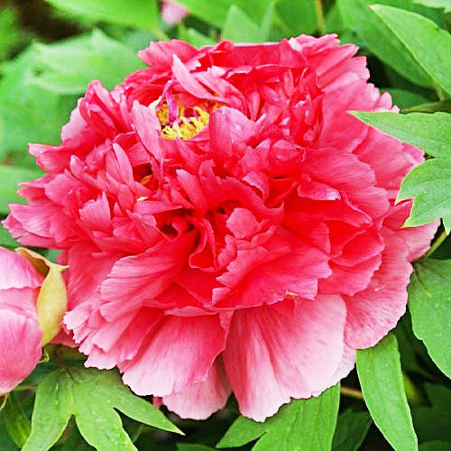 Великолепный пион Као древовидный способен достичь высоты 120-150 см. Его крупные густомахровые соцветия диаметром 20-25 см с желтой сердцевиной поражают удивительными оттенками рубина, пурпура и коралла. Обильно цветет в мае 8-15 дней, окутывая сад легким пряным ароматом.