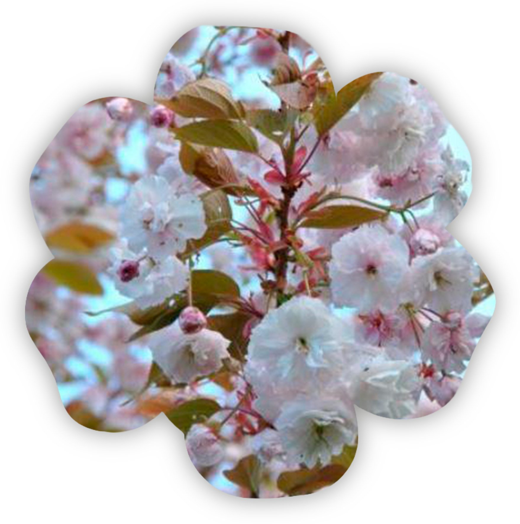 Сакура "Шогецу" считается одной из самых изысканных сортовых форм. Побеги покрыты полумахровыми бело-розовыми ароматными цветами на длинных цветоложах.